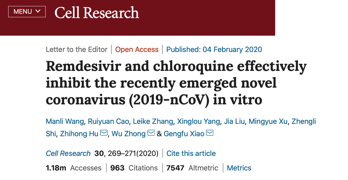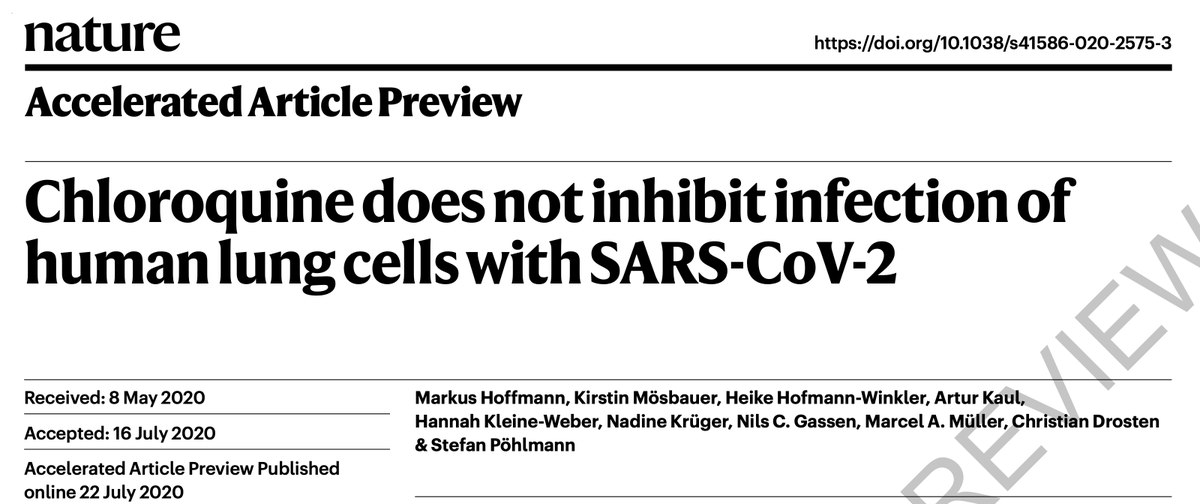 6⃣ولكن هذا معناه أن طريقة الدخول الأخرى من خلال الالتحام المباشر بجدار الخلية وتنشيط البروتين الشوكي S بواسطة الإنزيم TMPRSS2 لا تتأثر تماما بالكلوروكوين. ولكننا إندفعنا وراء الضغوط السياسية والأمل الذي صدرته لنا هذه الورقة المنشورة في 4 فبراير الماضي: