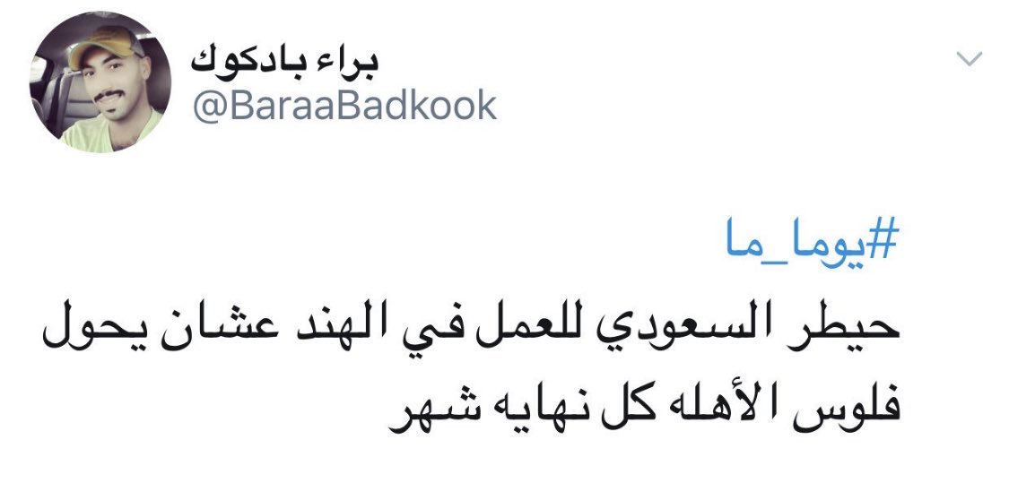 وانا احزن كثيرا عندما ارى مجموعة اجانب ملتصقين في السعوديين في وسائل التواصل ولا يعترفون بجنسياتهم لو السعودية مافيها فلوس اتحدى احد فيهم يقول انا سعودي او سعودية وابناء الوطن الشرفاء جالسين يدافعون عن الوطن على الحدود وفي وسائل التواصل ١/٩