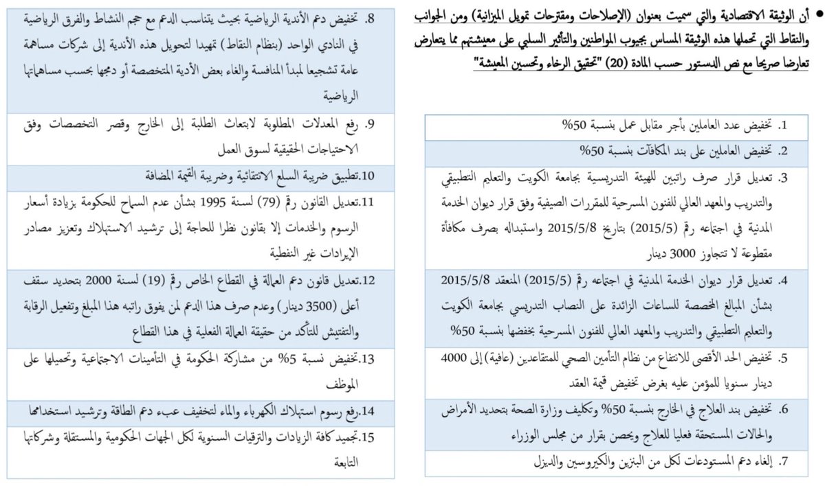 كل ماذكر بهذه الوثيقة راح يصدر بقرار او مرسوم ضرورة خلال الفترة القادمة اذا ماكان في موقف واضح من النواب، واحنا كشعب ما نتحمل اخطاء وزارة المالية وسوء ادارة المالية العامة للدولة، الحل الوحيد هو وزير المالية يسحب هذه الوثيقة من مجلس الوزراء