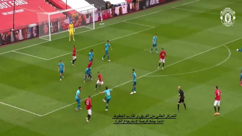 في النصف الأول من الموسم كان مانشيستر يعتمد أكثر على دفاع المنطقة و يتمركز ب ٩ لاعبين تقريباً إلى ٨ وراء الكرة .