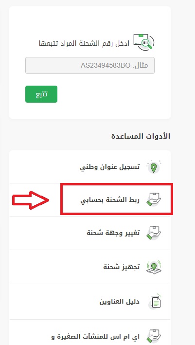 ووضع رقم التتبع لمعرفة اذا الشحنة وصلت او لا.