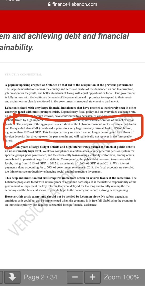 ومن اهم ما ورد فيها تحليل وجد عدم توازن قائمة ارقام المركز المالي للبنوك التجارية ب ٣٦ مليار دولار اي ١٢٠٪ من الاقتصاد اللبناني