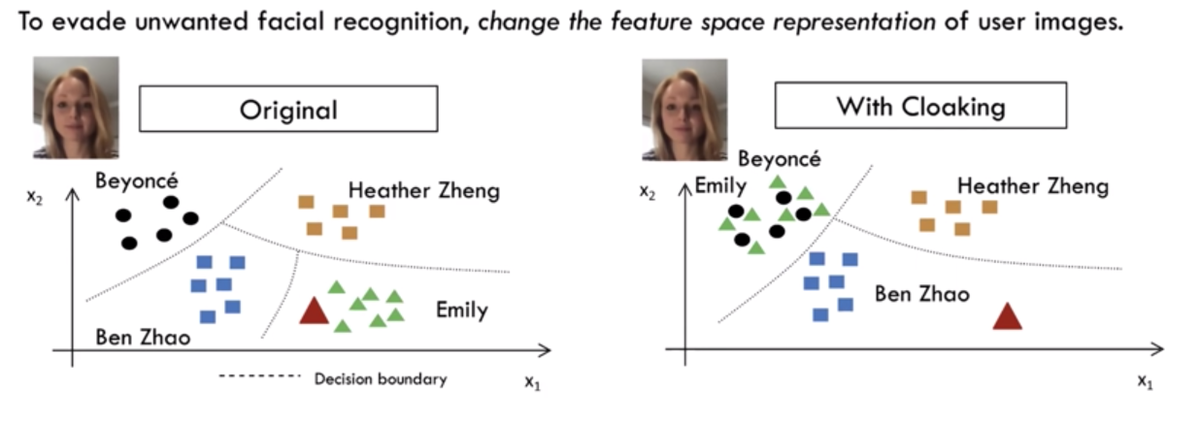 ضمن جهود مكافحة الاستخدام الغير مصرح به للبيانات، طور باحثون في جامعة شيكاغو أداة لتمويه الصور لحماية صور المستخدم في وسائل التواصل لإعاقة أنظمة التعرف على الوجه.