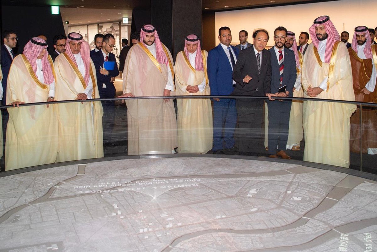 جانب من زيارة ولي العهد الأمير محمد بن سلمان لمتحف هيروشيما للسلام يونيو 2019 والذي من خلاله إلتقى بإمرأة يابانية عاشت تلك اللحظات المروعة ونجت بأعجوبة 🇯🇵