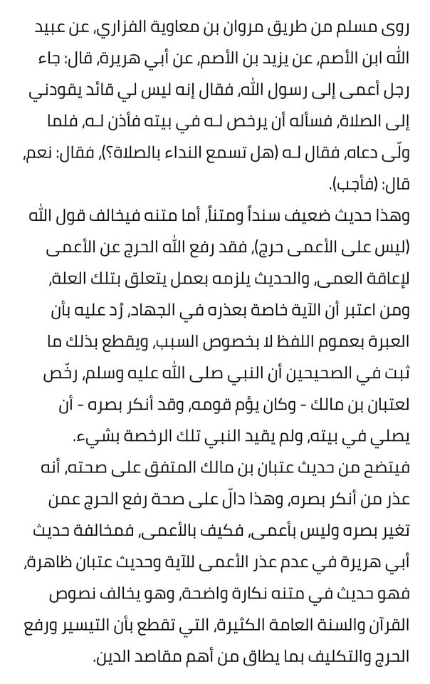 فنحن هنا نردّ عليه تضعيفه لحديث في صحيح مسلم، ونرفع من شأن شعيرة الجماعة،