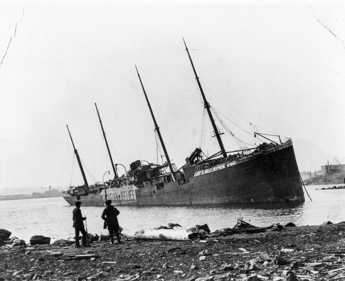 اصطدمت سفينة فرنسية محملة بالكامل بالمتفجرات عام1917بالخطأ بسفينة بلجيكية في ميناء هاليفاكس بكندا وأسفر عن انفجار ضخم وعموداً أبيض من الدخان بارتفاع 20 ألف قدم وأثار موجة تسونامي بارتفاع 60 قدمًا وقتل 2000 وجرح 9000 ولا يزال أكبر انفجار عرضي اصطناعي في العالم.