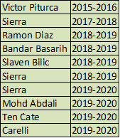 تعاقب على ادارة الدفة الفنية في نادي #الاتحاد خلال الخمس مواسم الاخيرة 10 مدربين: