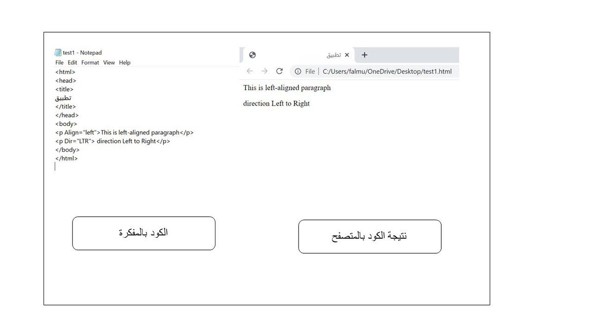 ويستخدم ايضاً كوسم مزدوج لتحديد اتجاه الفقرة وإتجاه النص فيها حيث يستخدم معه الخصائص التالية : Align,Dir