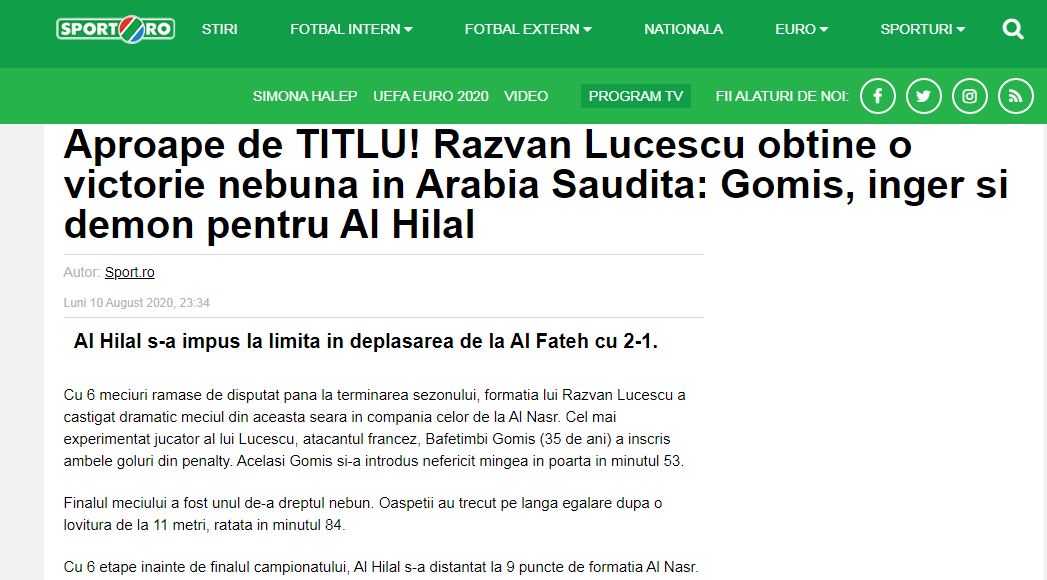 💥 صحيفة "sport" الرومانية: اللقب يقترب! فريق لوشيسكو يُحقق انتصارًا مجنونًا في السعودية بنتيجة 2 ـ 1.. جوميز كان أمام الفتح ملاك وشيطان بعد أن سجل هدفي #الهلال من ركلتي جزاء وأحرز بنفسه بالخطأ هدف في مرماه.. مع 6 مراحل قبل نهاية البطولة، يبتعد الهلال بفارق 9 نقاط عن النصر.