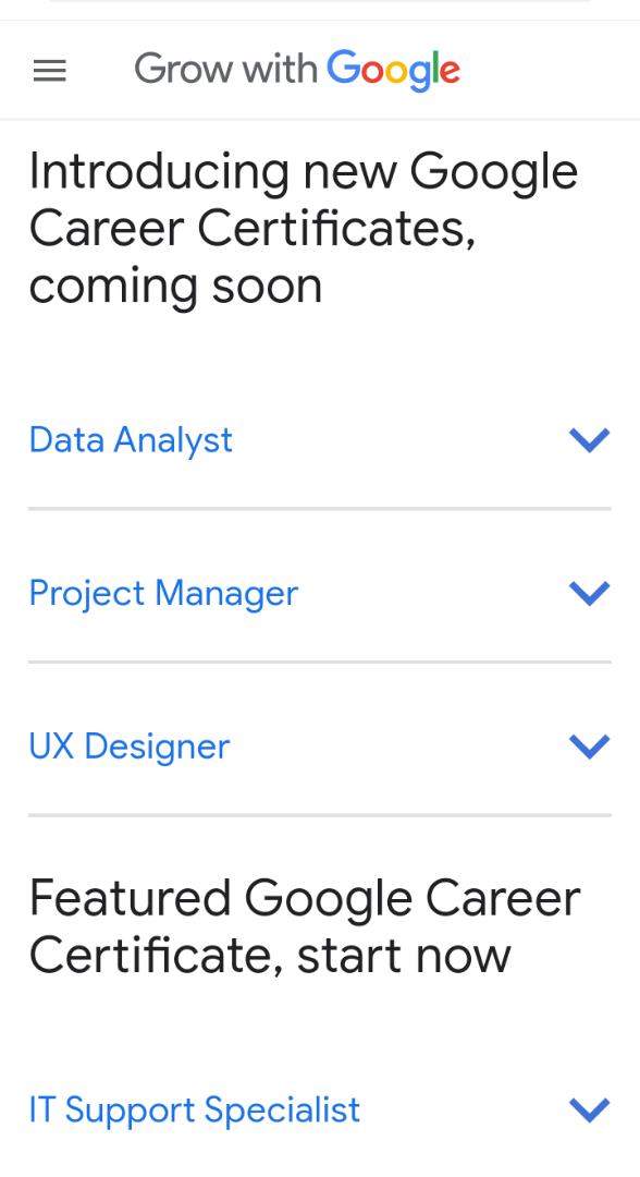 أولا تعمل حساب في منصة كورسيرا ، حاليا متوفر كورس واحد بس من الكورسات الأربعة دي وهو كورس ال IT ومتوفر بالترجمة العربية حتعمل بحث وحتلقاهو في كورسيرا