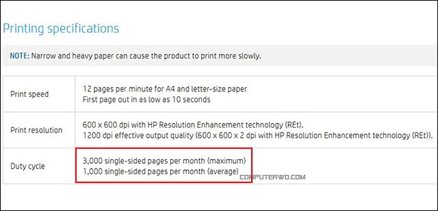ويُمكنك التعرف علي حجم عمل الطابعة من ما يُسمي بـMonthly Duty Cycle وهو ما يُحدد حجم عملها من حيث عدد المستندات التي تتحمل طباعتها خلال الشهر الواحد