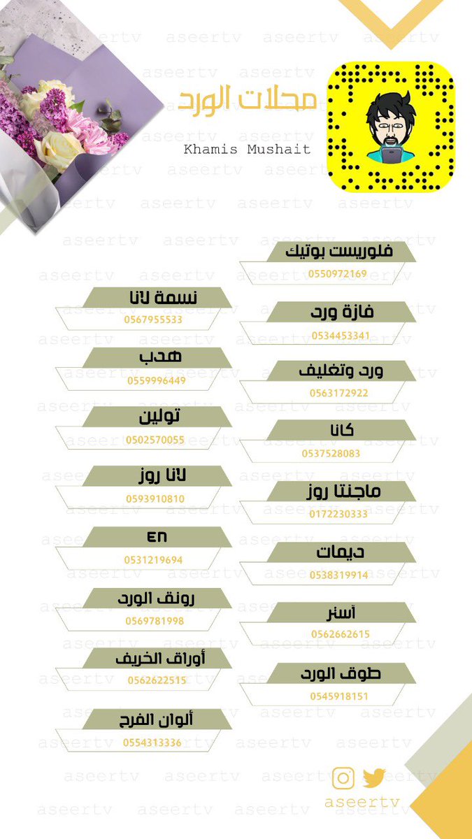 • قائمة لـ بعض محلات الورد 🌸 والمشاغل النسائية 💅🏽 في مدينة #ابها و #خميس_مشيط مع أرقام التواصل :