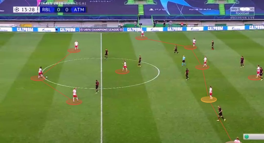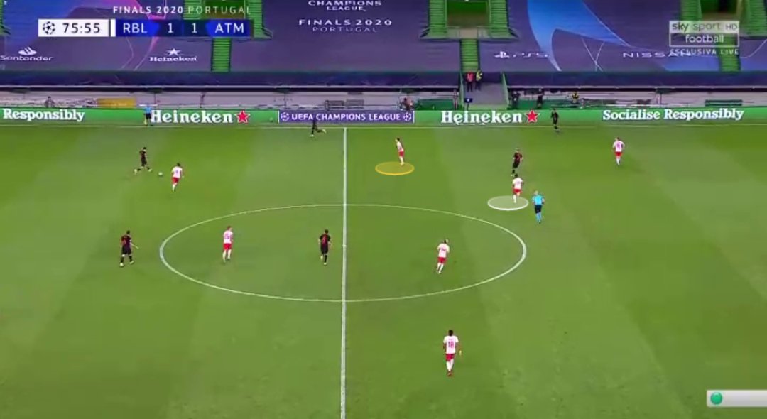 تبديل بدا راجعًا جزئيًا لرغبة ناغلزمان بأحدٍ يواجه جواو فيليكس الذي أحدث الفارق في الجانب الأيسر من عمق الملعب إلا أنه لم يُغير أسلوب لايبزيغ في الهجوم.