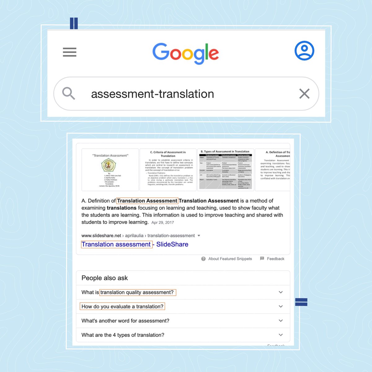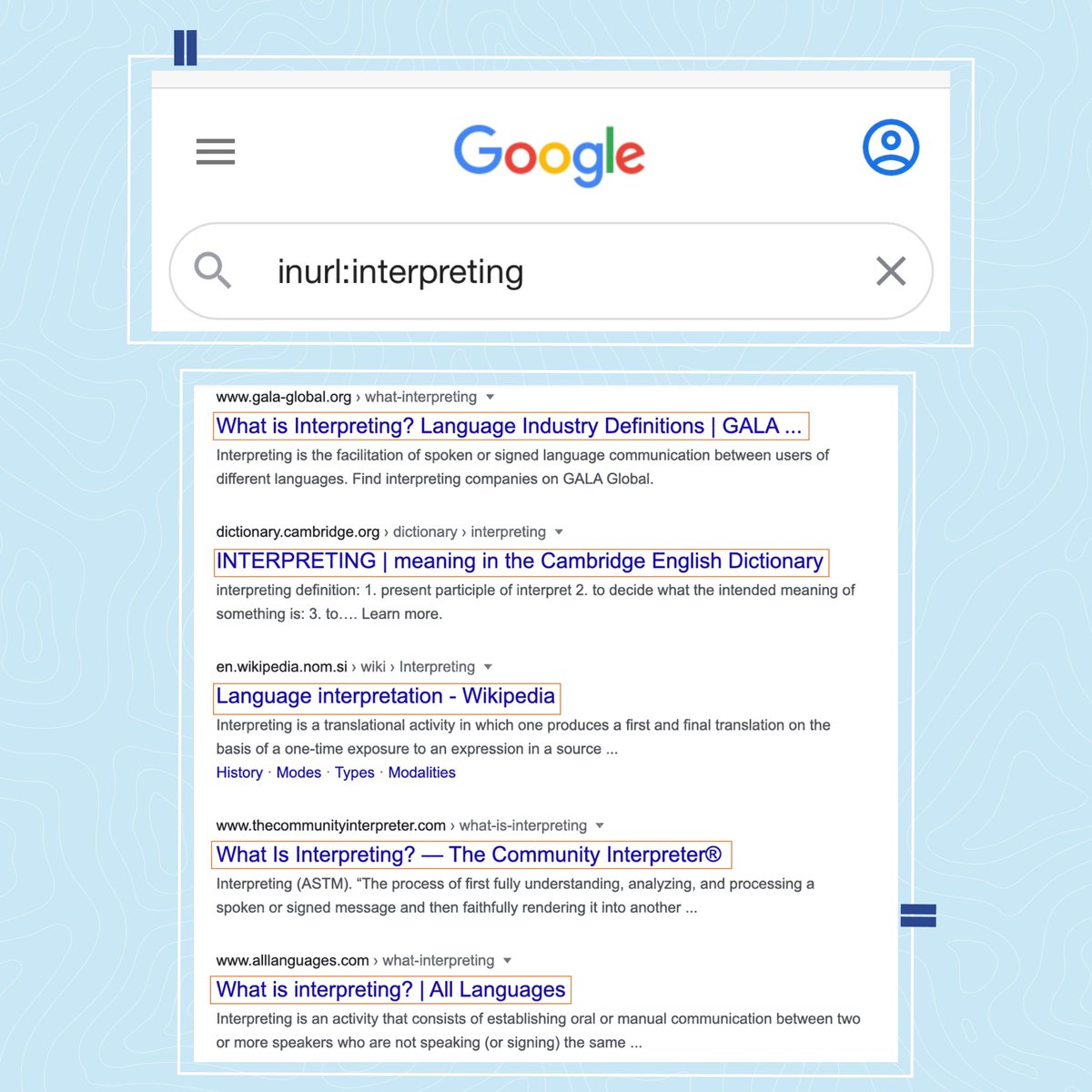 لأن عملية البحث هي جزءٌ لايتجزأ من عملية #الترجمة سواء أمعلوماتيًا كان البحث أم لغويًا، أضع ضمن سلسلة التغريدات هذه بعض طرق البحث المبتكرة لمُحرك جوجل التي يمكن للمترجم الاستفادة منها؛ إذ ستختصر وقته، وستسهّل عليه الوصول إلى معلومات أكثر دقة، انطلاقًا من تجربتي الشخصية.