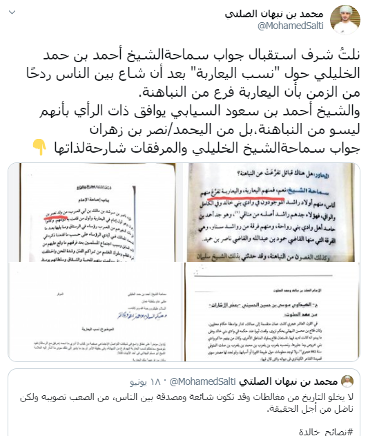 هنا في المقطع نقل بالصوت والصورة من شيوخ النباهنة من الجبل الأخضر ينسبون قبيلتهم لحمير