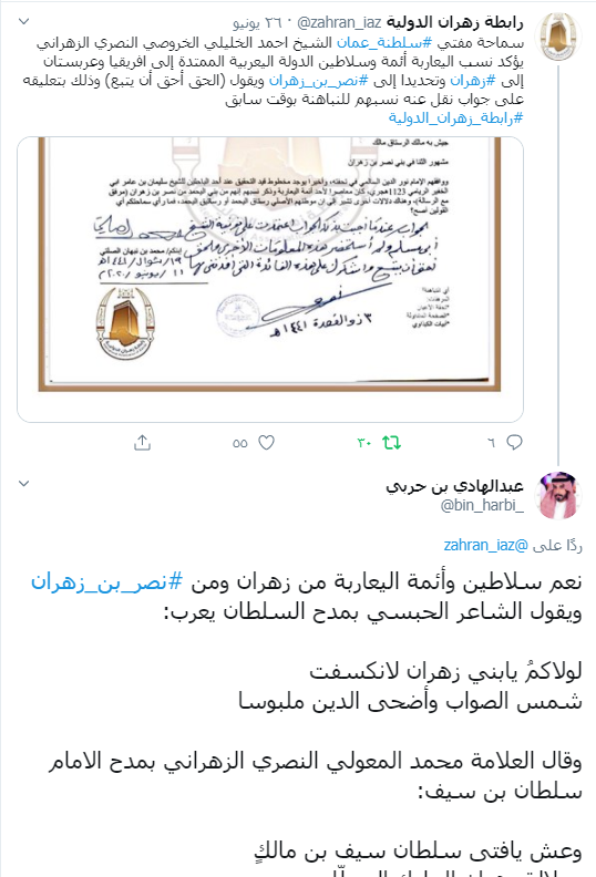 2- اليعاربة: إلى زهران.