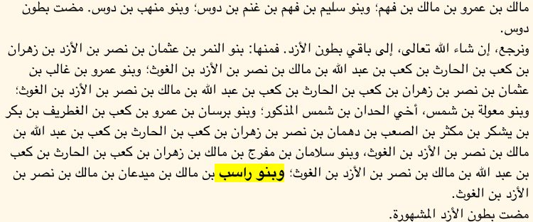 3- بنو راسب بن مالك بن ميدعان بن نصر ابن الأزد