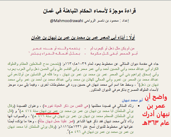 نعود إلى النسب الأرجح للنباهنة:
