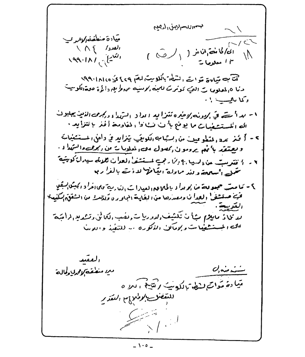 أورد الغزالي بكتاب "السور الرابع" تقرير كتبه أحمد العربيد -أحد الفاعلين في حركة المرابطون- في سبتمبر 1990 سلمه للشيخ علي صباح السالم الذي كان متمركزاً في الخفجي، ذكر عدة نقاط رئيسية منها