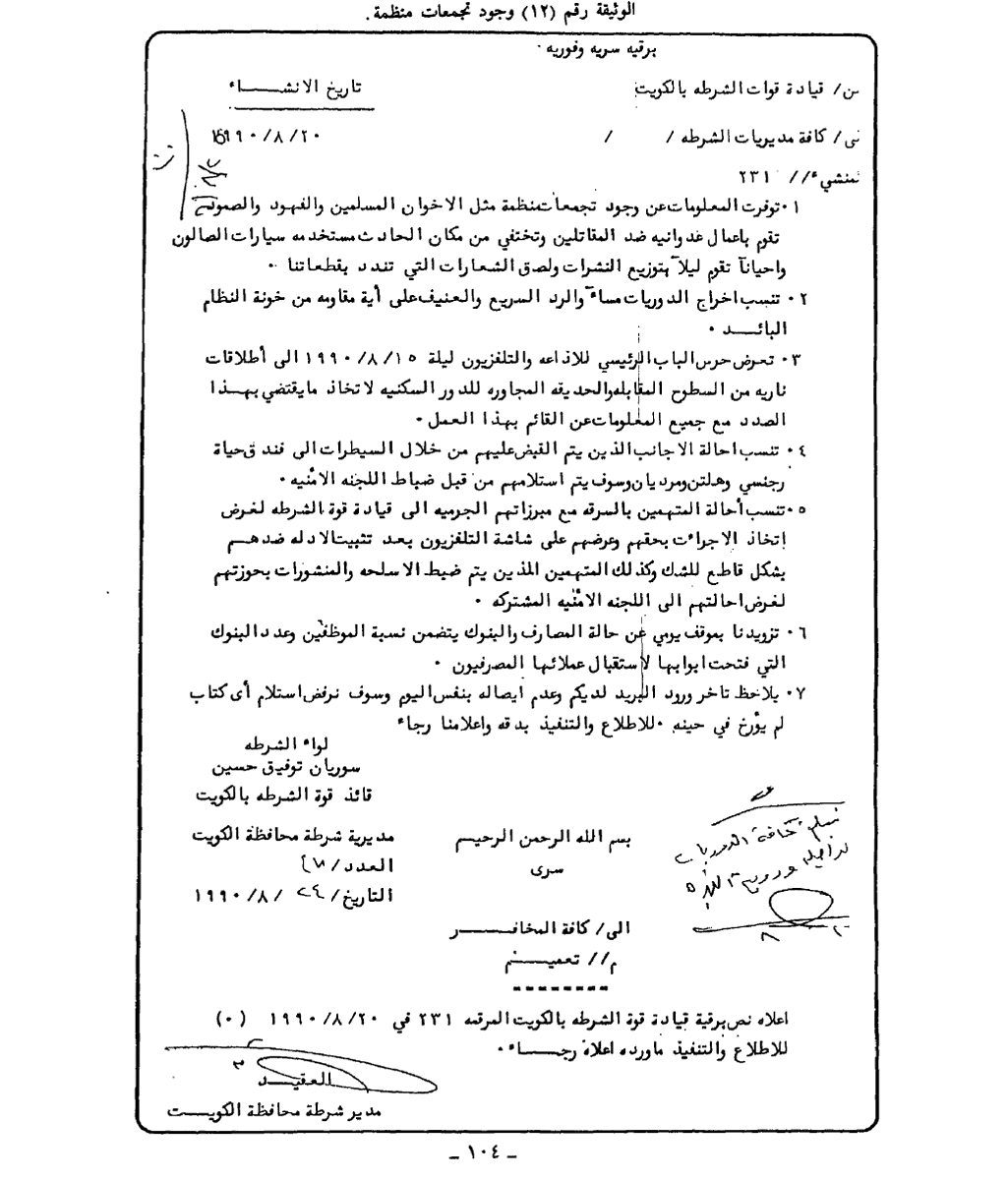 كانت التوجه في الشهر الأول من الغزو هو المقاومة المسلحة لطرد المحتل وتحرير الكويت، فتذكر وثائق العراقيين ازدياد العمليات ضدهم نهايات شهر8، ما دفع السلطة العراقية إلى نشر الجيش الجمهوري الشرس في الكويت شهر 9 وفرض القبضة الحديدية..