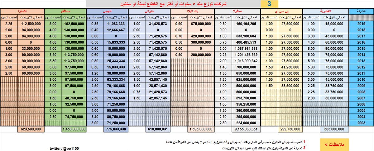 - الأرقام أعلى الجداول للتصنيف والترتيب فقط.