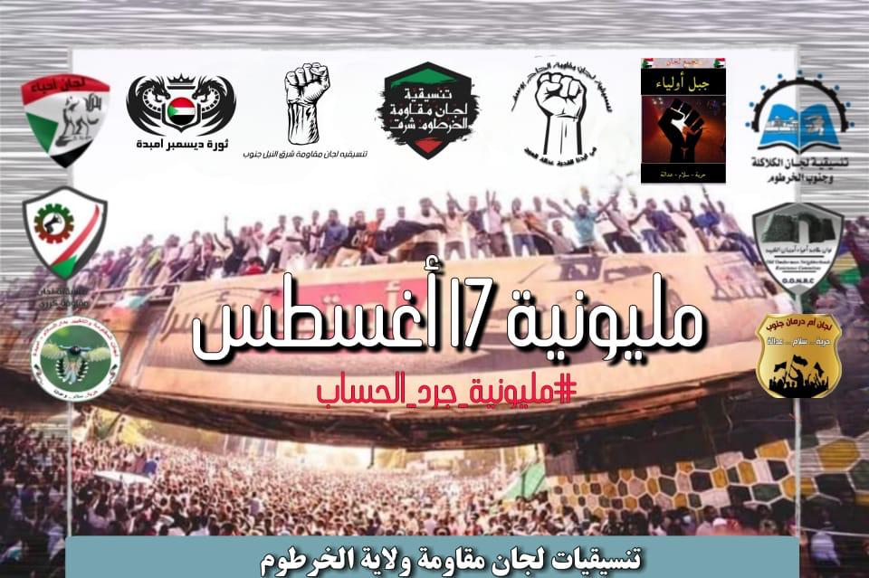 لمسار ثورتنا المجيدة، والاختلالات الكثيرة التي شابت مسار الثورة، قد عقدنا العزم على الخروج للشوارع مجدداً وبداية عمليات التصعيد الثوري المنظم والمفتوح اتطلاقا بموكب #جرد_الحساب في السابع عشر من أغسطس "الذكرى الأولى لتوقيع الوثيقة الدستورية" المتجه إلي رئاسة مجلس الوزراء، وحتى