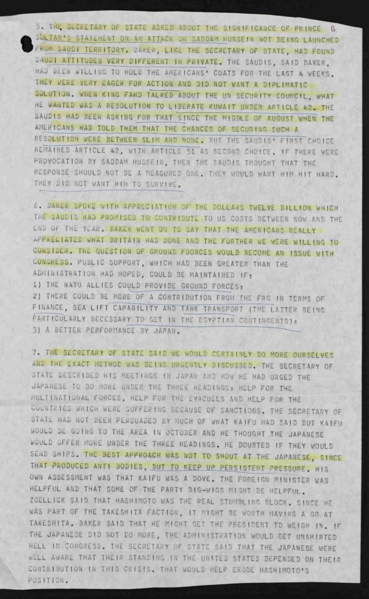 🛑٨ ان بيكر راضي جدا على مستوى التعاون الذي توفره حكومات الخليج وان من الضرورة حتى اذا خرج #العراق يجب التحرك لمنع #صدام_حسين من استعادة قدراته العسكرية باي ثمن وان القوات الحالية كافية لحماية المصالح في #السعودية لكنها ستكون جاهزة لاستعادة كويت بعد ٦ اسابيع من اللوجستيات.