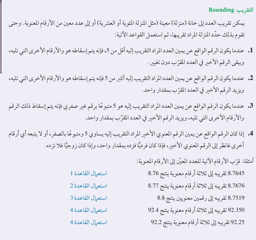 قواعد الأرقام المعنوية والتقريب والعمليات الحسابية