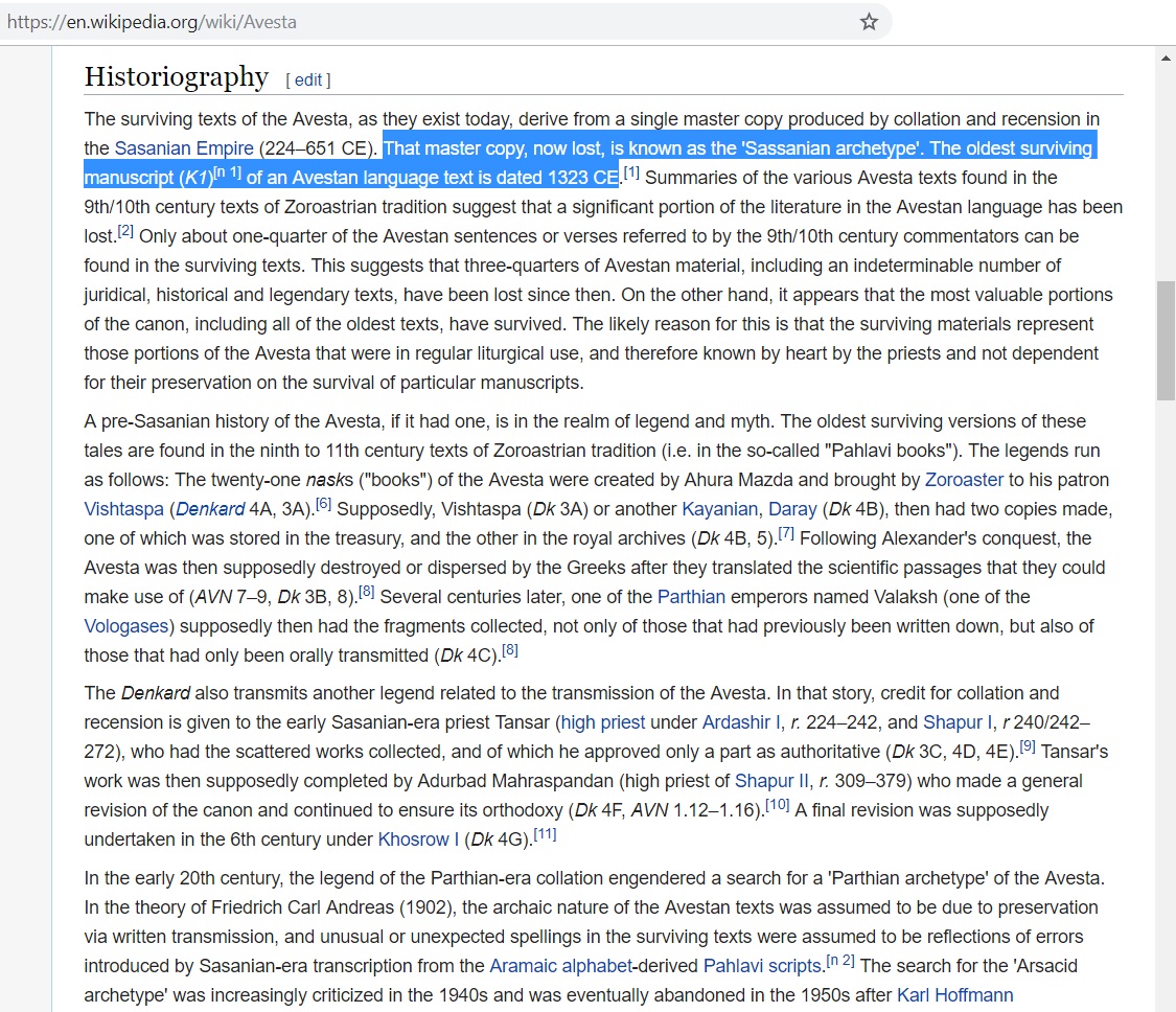 🔷أقدم مخطوطات الأفستا كتبت سنة 1288 أو 1323بعد الاسلام ب500 أو 600سنة