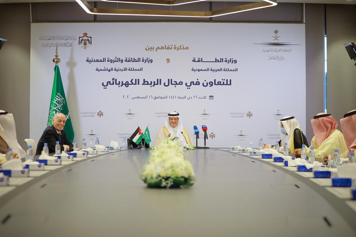سمو #وزير_الطاقة الأمير عبدالعزيز بن سلمان، ومعالي وزيرة الطاقة والثروة المعدنية بالأردن م.هالة عادل زواتي، يوقعان اليوم، مذكرة تفاهم تؤطر التعاون المشترك في مجال الربط الكهربائي بين شبكتي البلدين.