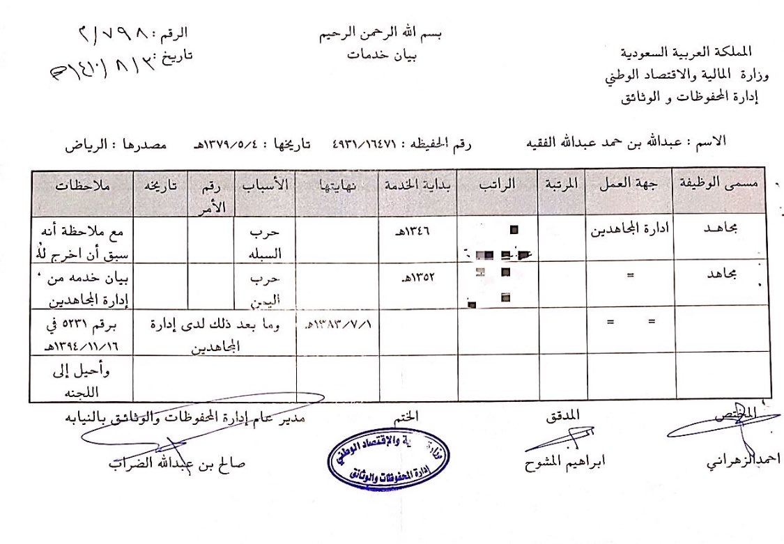 وما ذكر أعلاه من المواقف حسب المصادر المرفقة، أما ما جاء على لسان كبار السن والمؤرخين فهو أكثر من تلك المواقف، كانت ولا زالت وستظل أسرة الفقيه موالية للأسرة الحاكمة ولهذا الوطن المعطاء.