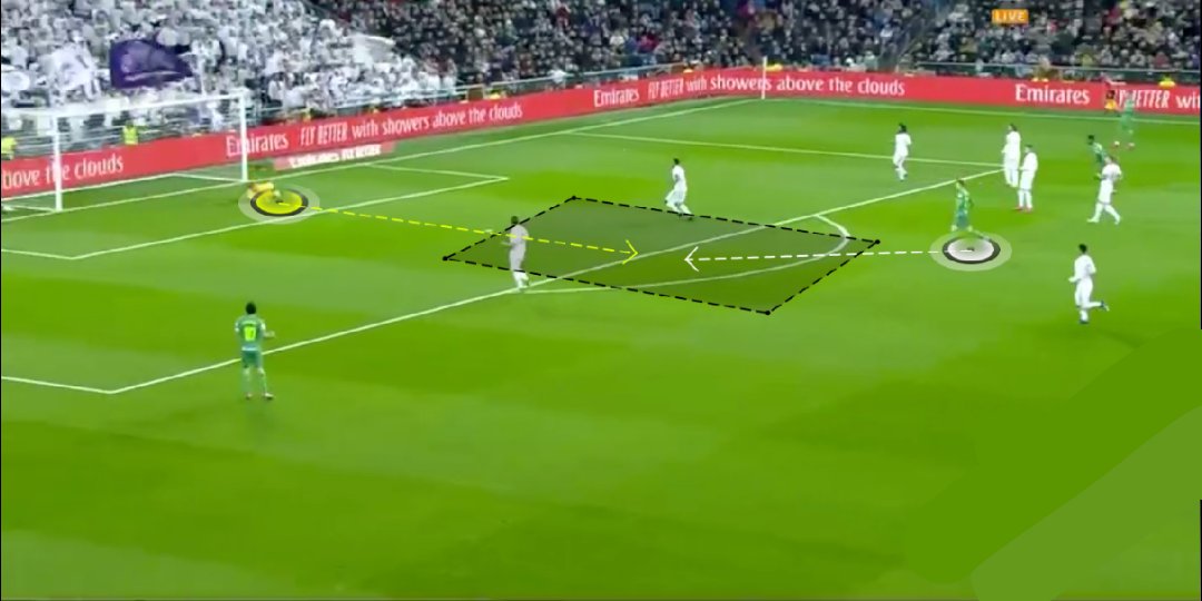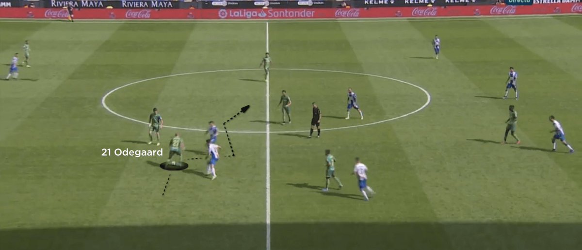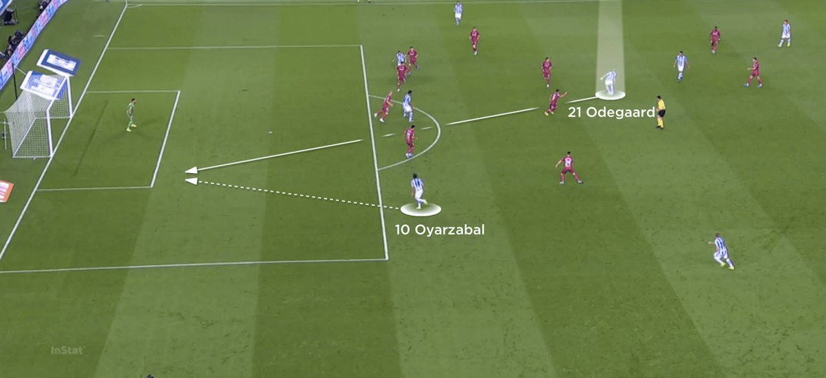العمل الهجومي على الرواقين في ريال مدريد يستلزم صعود الظهيرين.في حالة أوديغارد سيتمكن بسحبه الخصم نحو العمق من تحرير المساحة و فتح الرواق لكارفاخال للاقتحام أو لرفع الكرة،بينما يتمركز مارتن في موقعه المفضل خلف المهاجم.جملة تكتيكية تكررت كثيرا للنرويجي مع سوسيداد (جناح أيمن وهمي)