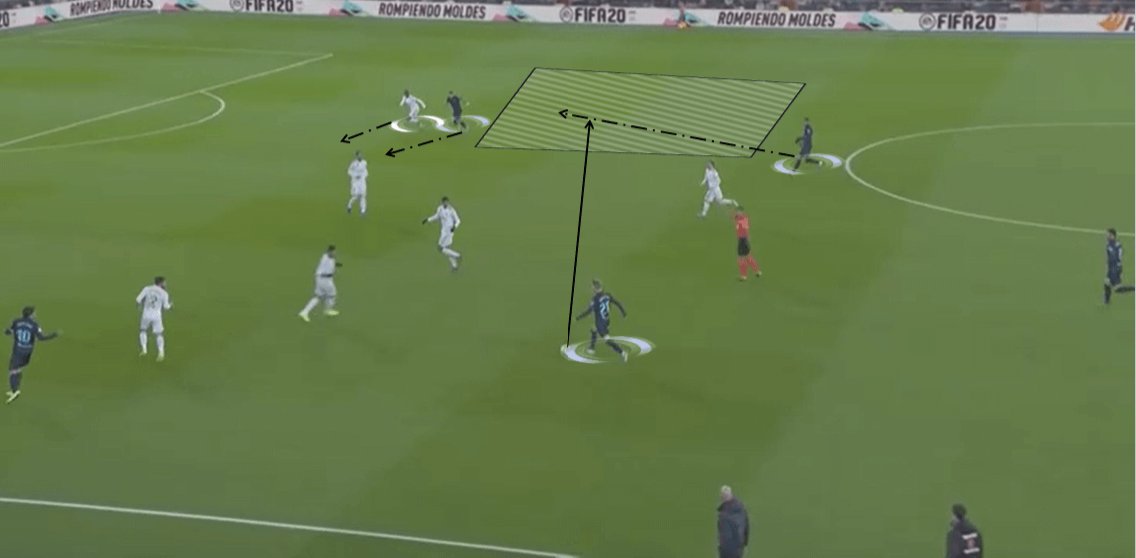 وظائف دفاعية أقل لاوديغارد على الرواق بشرط أساسية فالفيردي أو مودريتش في الوسط اليمين. سيمكن ذلك زيدان من الحفاظ على توازنه الدفاعي في الوسط و سيمكن أوديجارد من القيام بما يحسن فعله عند فقدان الكرة: الضغط المتقدم لإسترجاعها و الهجوم العكسي.