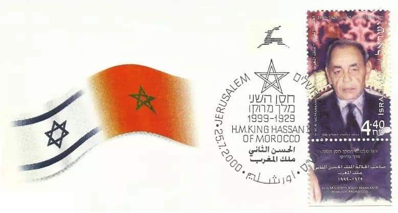 بل إن إسرائيل أصدرت في يوم وفاة العاهل المغربي طابعا بريديا يحمل صورته، وكُتب على الطابع البريدي بالعربية:"صاحب الجلالة الملك ⬇️