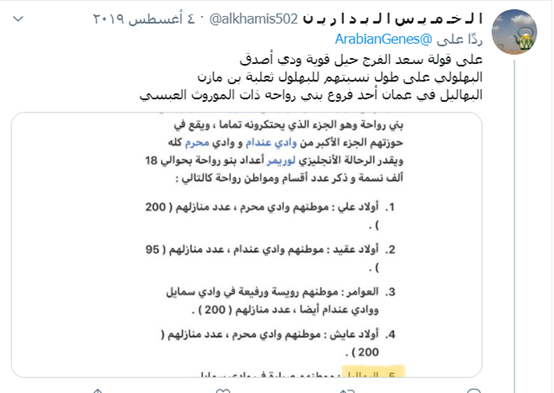 2- القبائل المتفرعة عن هذا الجد حملت أسماءها المعروفة ليس من ضمنها البهاليل!