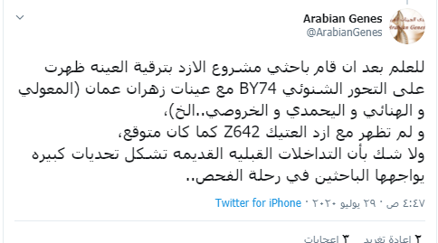 1- العينة خرجت على التحور BY74 وهو أقوى خط لهم في عمان 2- لم يعتذر عن إصراره وتدليسه السابق