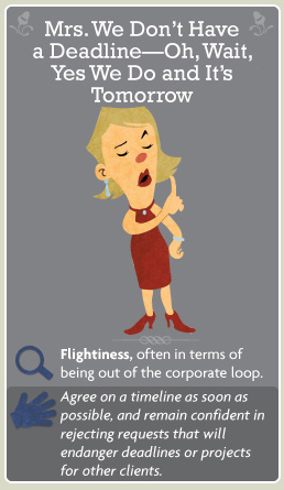 وأما هذا العميل .. فيظن أنه محور الكون😄 وأن مكتبك لم يفتح إلا له ولا عمل لديك إلا مشروعه.. فتجده يتعامل مع كل طلب بأنه طلب عاجل ويجب عليك إنجازه اليوم قبل غداً. لذا يجب أن تخبر العميل بأن لديك عملاء آخريين. وأن مشروعه يسير وفق جدول زمني وأن التصميم سينتهي في موعده المتفق المحدد