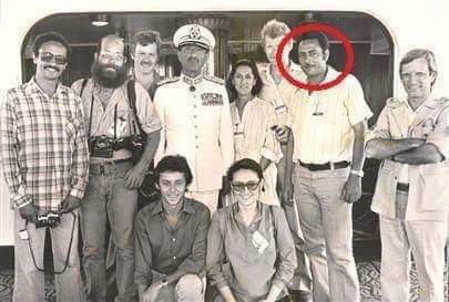 المقاتل (( علوان )) .. هو الثاني من اليمين في صورة له مع الرئيس انور السادات وبعض مراسلين الصحف الأجانب ، عام 1975 ، التقطت على ظهر المدمرة 6 اكتوبر عام 75 ، بعد اعادة افتتاح👇🏻👇🏻