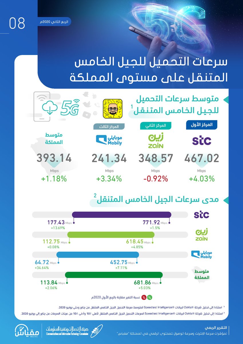 شمل مقارنات بين سرعات المشغلين في المملكة وبيانات بسرعات التحميل والرفع