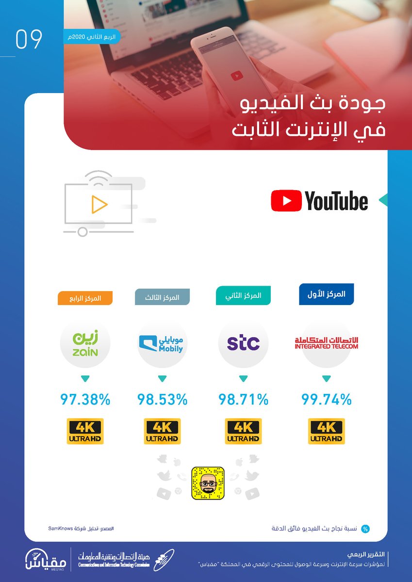 اطلقت هيئة الاتصالات وتقنية المعلومات التقرير الربعي لسرعات الإنترنت وسرعة الوصول للمحتوى الرقمي بالمملكة