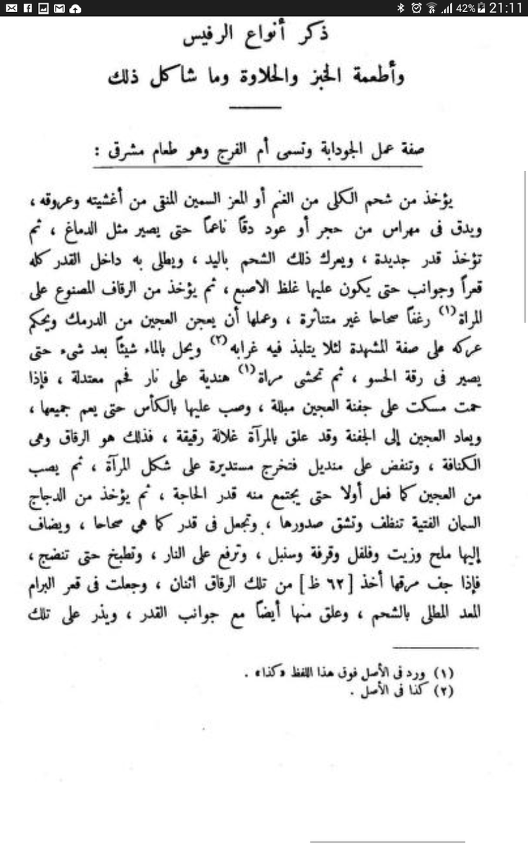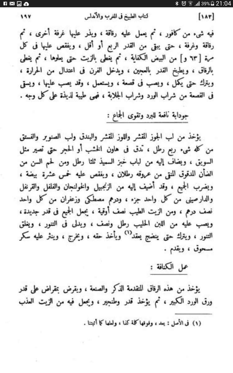 لكن كل مصادر الطهي التي نقلت عن العرب في العصر العباسي وأشهرها كتاب اصلاح الأغذية والمأكولات في القرن العاشر وكتاب الطبيخ للبغدادي في القرن ال 13 قبل غزو المغول لم تنقل أصلا أي وصفة تحت إسم الكنافة!