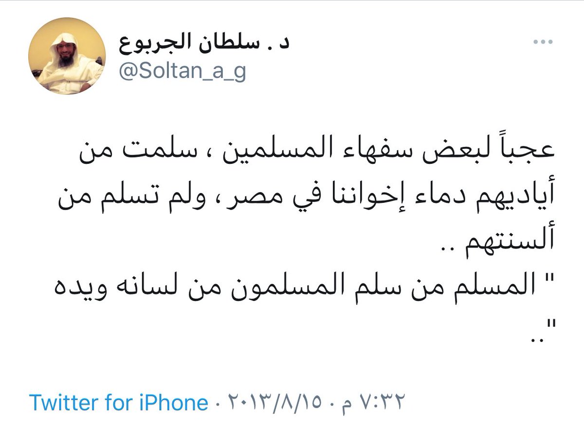 #الدكتور_سلطان_الجربوع غاضب من فض اعتصام #رابعة الإخواني وممن أيد رجال مصر فيما قاموا به من الحفاظ على بلادهم من عبث تنظيم الإخوان الإرهابي فيكتب الدكتور بعد فض الاعتصام بيوم واصفا المؤيدين بالسفهاء.