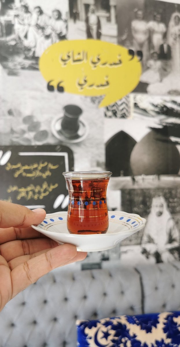 طاحت عيني صدفة على مكان يقدم شاهي عراقي ، تدخل المكان وتشوف جدارهم يحكي بعض من ماضي العراق ، و أول عبارة تطيح عينك عليها(خدري الشاي خدريه)