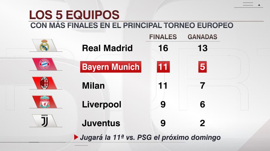 سان جيرمان الطامع في تحقيق اللقب الأوروبي الأول في تاريخه لمعادلة النادي الفرنسي الوحيد الفائز في المسابقة "مارسيليا" و بايرن الباحث عن تجاوز برشلونة في عدد الألقاب و معادلة ليفربول
