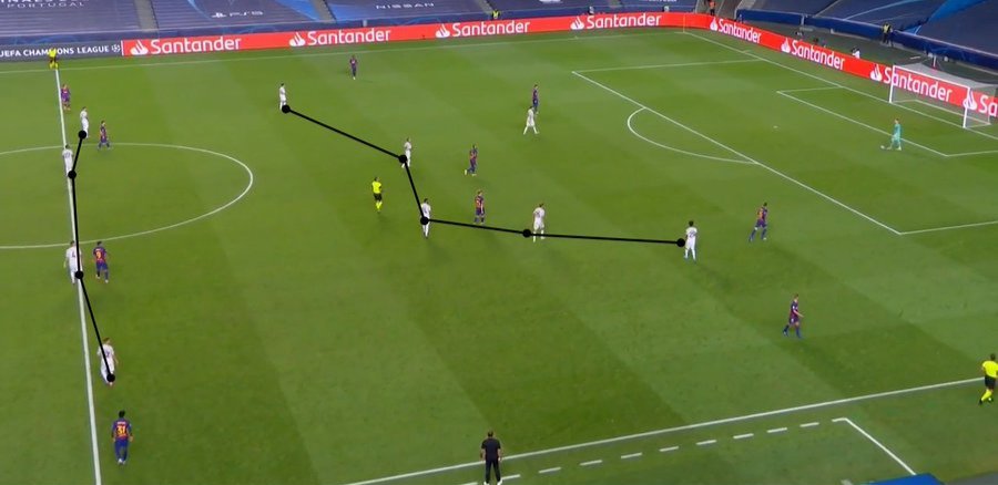 الظهيرين الهجوميين يتركان فراغا هائلا بالرواقين،مما يجبر ألابا و بواتينغ على المساعدة في تأمين المحور و جوانب الدفاع، مما يترك بشكل عام خط الدفاع البافاري مكشوفا بأكمله