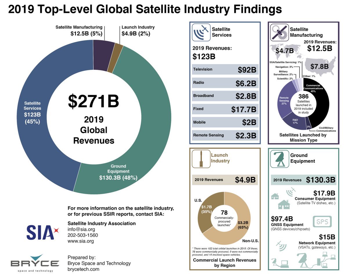 وصل حال هذا القطاع بإطلاق شركة سبيس أكس @SpaceX منذ العام المنصرم وحتى الآن سلسلة من الأقمار الصناعية ستارلينك #starlink المخصصة لتوزيع شبكة الإنترنت حول العالم، وهذا يؤكد أن قطاع الفضاء له تأثير جوهري في تطوير وتحسين مجال الاتصالات.