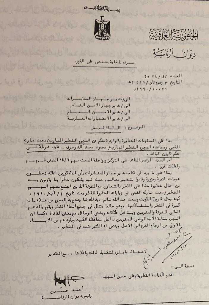 مشك: اتصالهم بالعمل المدني كالمرابطون والآخرين وفر لهم قاعدة مهمة من المعلومات تغطي كامل الكويت وفي مختلف القطاعات أهمها النفط وعملية تفخيخ آبار النفط من قبل العراقيين وكيفية التعامل معها، إضافة لعملية توزيع الأموال في الداخل والتواصل مع القيادة في الطائف..