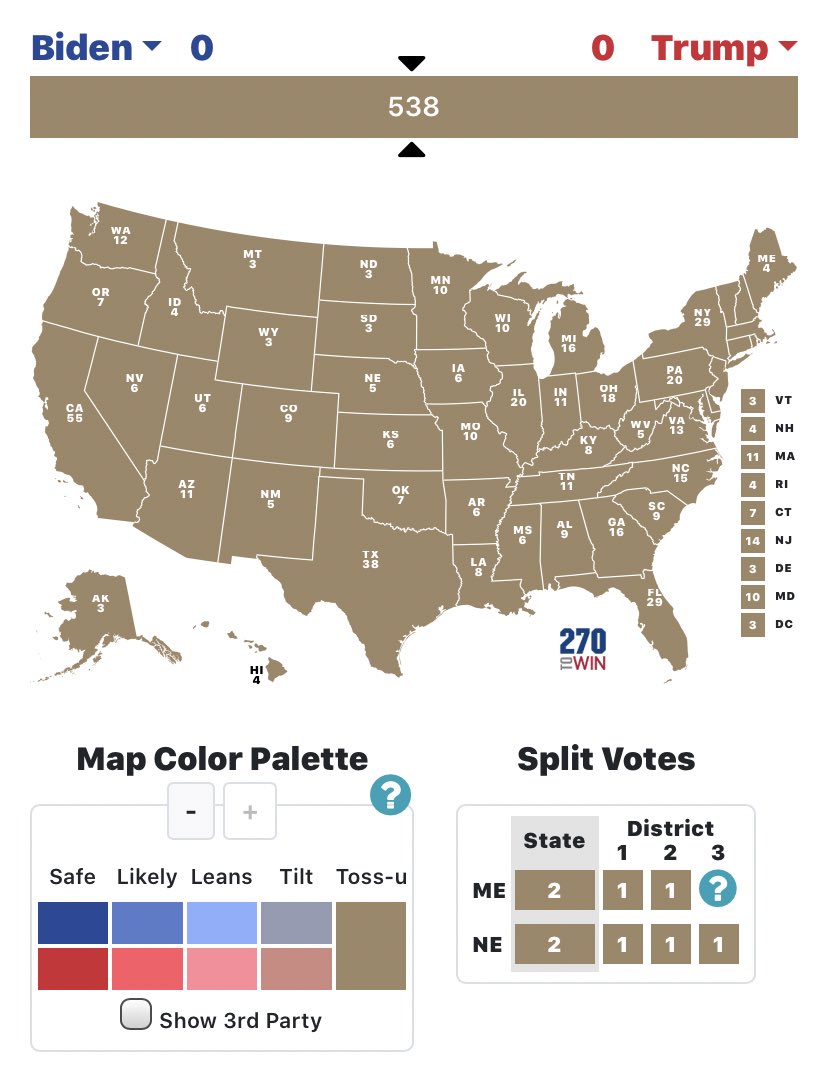 هذا يضع بايدن فوق العدد المطلوب لكن هاذي استطلاعات الراي حتى الان وممكن الوضع يتغير بيوم وليله زي ٢٠١٦