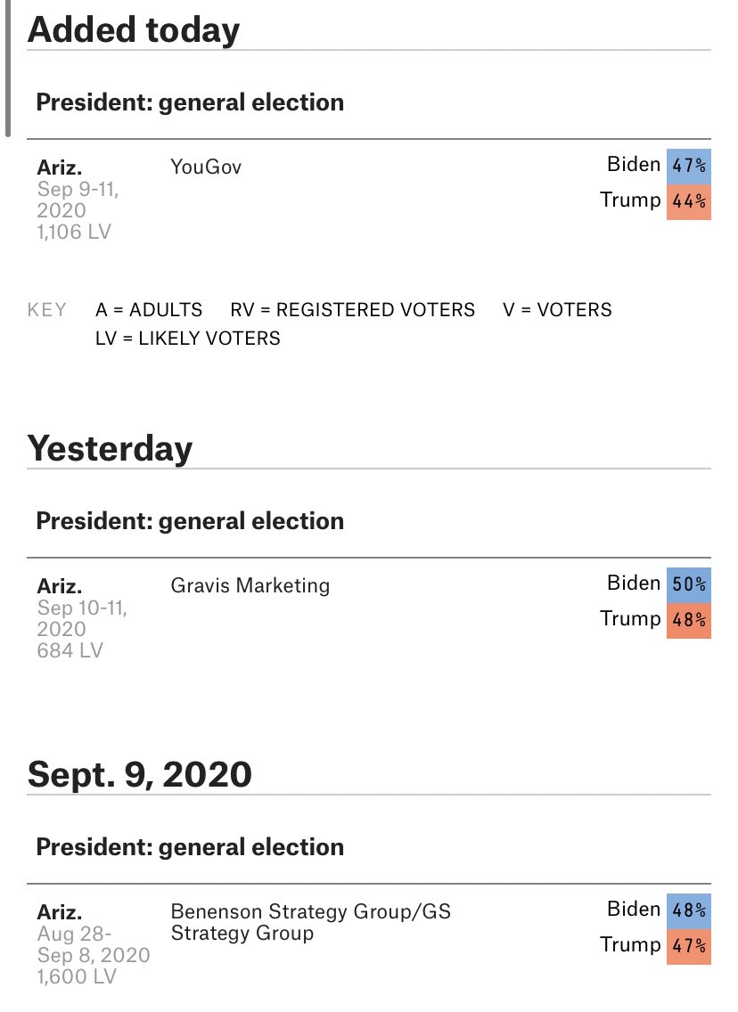 حيث رغم حزبيتهم وتقييمهم السيئ الا انهم وضعو ترامب متفوق بولاية تميل لبايدن،وولاية امنه لبايدن اصبحت فقط ٢ له،وهوا اقتراع يفضلهم بشدة ويقلل من الجمهوريين،امر ملفت للنظر