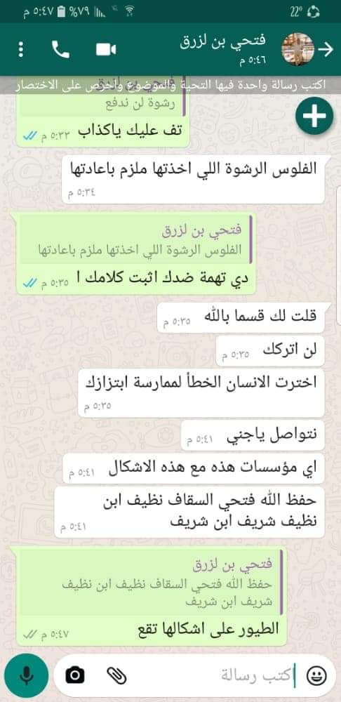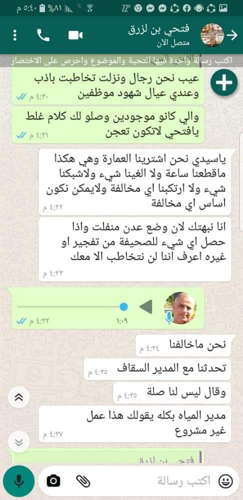 الا تعرف مع من تتحدث ، لقد اخترت الشخص الخطأ ودخل معه في متاهات وتفجيرات وتهديدات وملاحقات وسيحمله مسؤلية أي عمل يحدث له ثم ختم كلامه بانه سيلاحق الموظف ولن يتركه ابدا